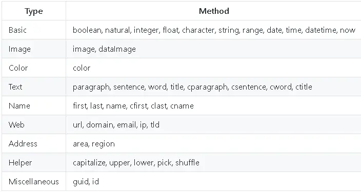 - Mock.Random (该功能较多,只列举部分常用的)