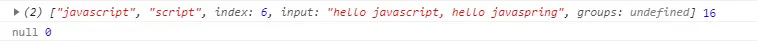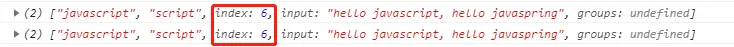 - index// 当前匹配结果的开始下标。这里匹配的javascript字符串的开始下标为6。