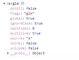 console.dir(reg2) // 打印出该对象下表中列出了所有的正则表达式实例属性。