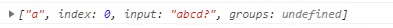 console.log('abcd?'.match(/a/)) 在不是全局匹配的情况下,其返回结果和exec()方法如出一辙,如果表达式含有子表达式的话,数组的第二项及后续项是子表达式的匹配结果。如果是全局匹配的话,则会返回一个由所有匹配结果组成的数组: