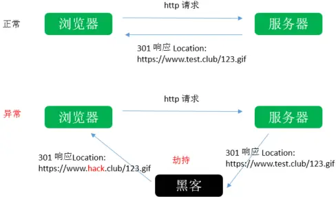 由于用户习惯,通常准备访问某个网站时,在浏览器中只会输入一个域名,而不会在域名前面加上 http:// 或者 https://,而是由浏览器自动填充,当前所有浏览器默认填充的都是http://。一般情况网站管理员会采用了 301/302 跳转的方式由 HTTP 跳转到 HTTPS,但是这个过程总使用到 HTTP 因此容易发生劫持,受到第三方的攻击。