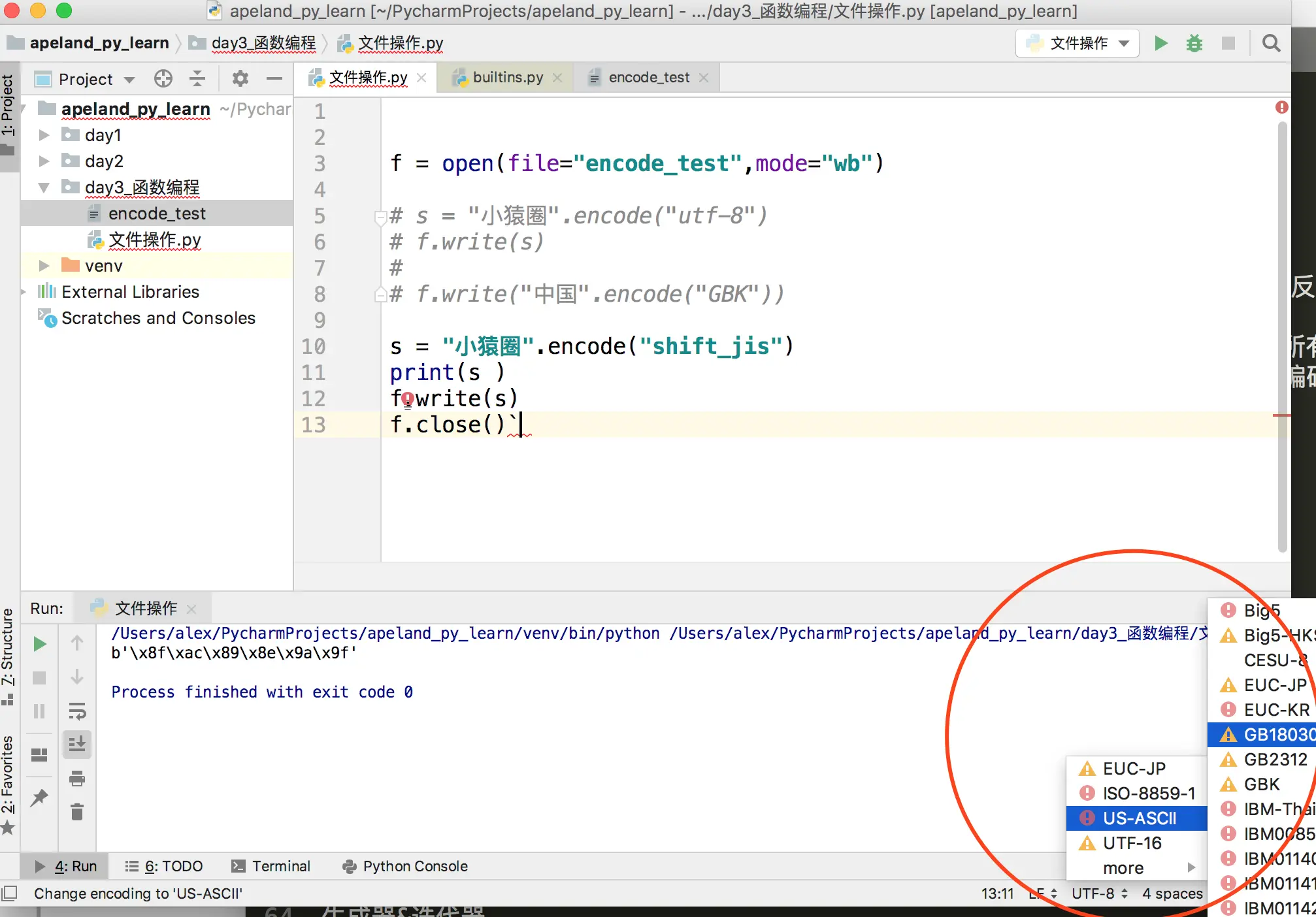 注意,不管在Windows or Mac or Linux上,你的pycharm IDE都可以支持各种文件编码,所以即使是utf-8的文件,在windows下的pycharm里也可以正常显示