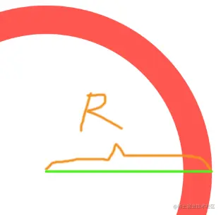 而通过 css绘制的圆弧,此圆弧的半径则是圆弧最外层边线与圆心的坐标距离:
