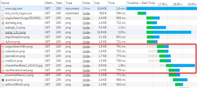 如上图所示,红色圈出来的请求就因域名链接数已超过限制,而被挂起等待了一段时间。