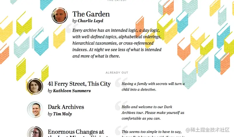 文章标题基本上是惟一的非斜体页面元素。在这种情况下,缺乏斜体字会更有效地吸引眼球(特别是结合粗体的字体)