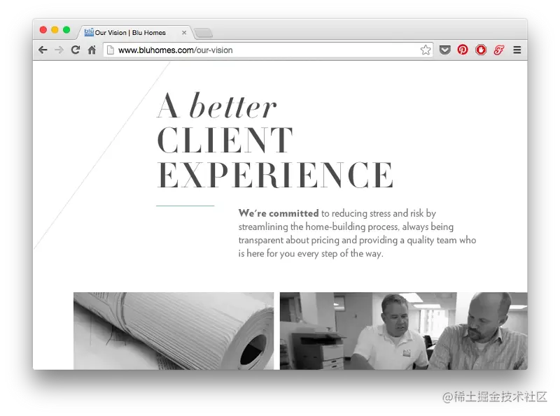 完美设计的 Blu Homes 网站有一些大标题,但是需要强调的单词都是小写的——过多的强调看起来会让人看不到重点。