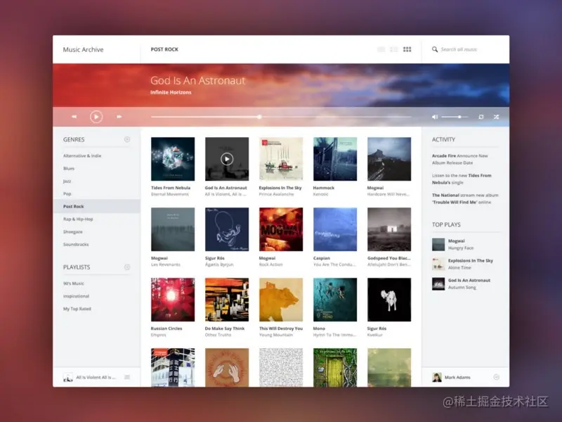 以下是 Piotr Kwiatkowski 的音乐播放器概念图。