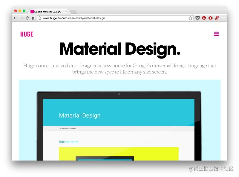 “Material Design” 的标题有很多“up-pop”。大字号,强烈对比,粗体。