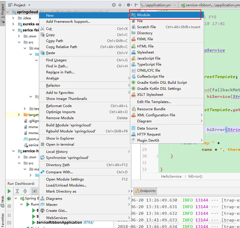 1.1 方式一:服务消费者(rest+ribbon) 1、创建消费者modul,流程如上述工程创建流程。