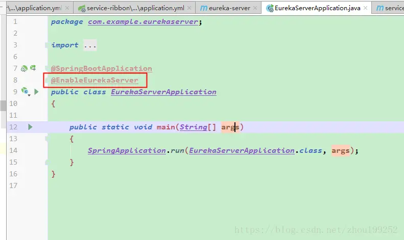 在工程的配置文件指定服务的注册中心地址为http://localhost:8761/eureka/ 。