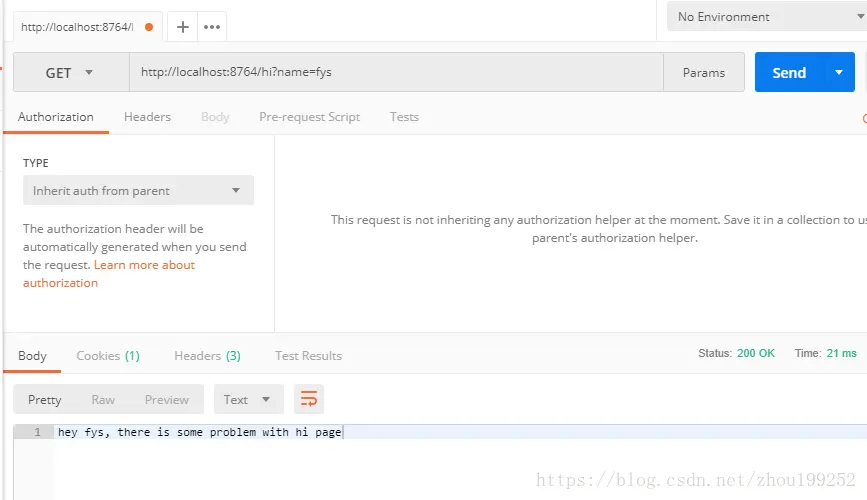 4、运行服务,登陆环境 http://localhost:8765/hi?name=fys
