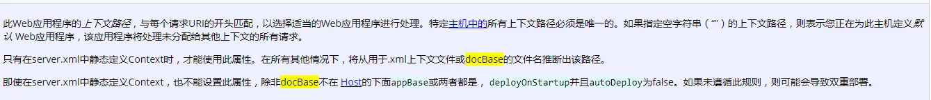 docBase 项目或者war包路径。没必要,会自动根据war包名称推算出来