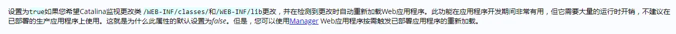 true: 当一个.war文件进入到webapps目录下。自动重启tomcat,解压war包。实现自动部署。