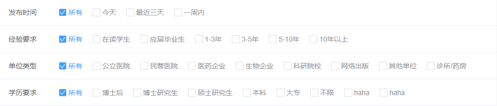 - 默认选择所有,跟后台协商好了选择所有传null,可以根据自己的情况修改