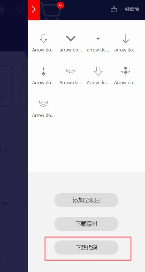 进入iconfont网站,选取想要的icon到购物车,最后【下载代码】