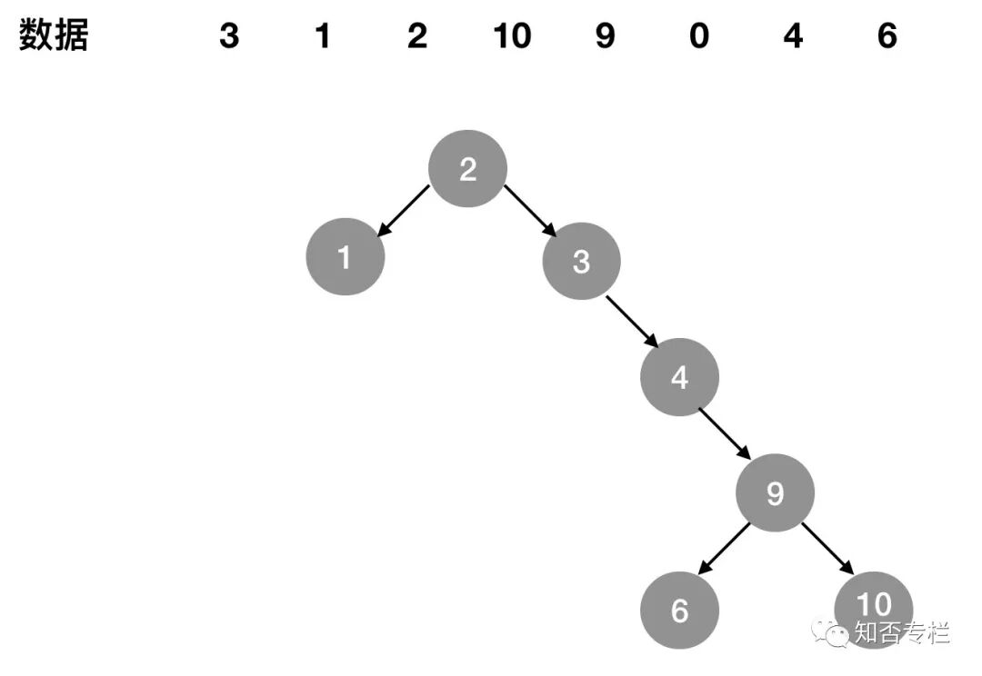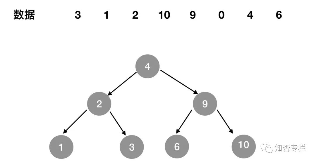 如有 3、1、2、10、9、0、4、6这8个数据,建立如 图1-2所示二分查找树。