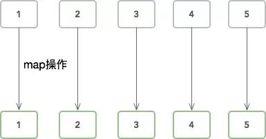 把数组流中的每一个值,使用所提供的函数执行一遍,一一对应。得到元素个数相同的数组流。