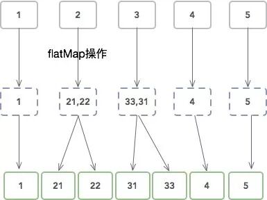 flat是扁平的意思。它把数组流中的每一个值,使用所提供的函数执行一遍,一一对应。得到元素相同的 数组流。只不过,里面的元素也是一个子数组流。把这些子数组合并成一个数组以后,元素个数大概率会和原 数组流的个数不同。