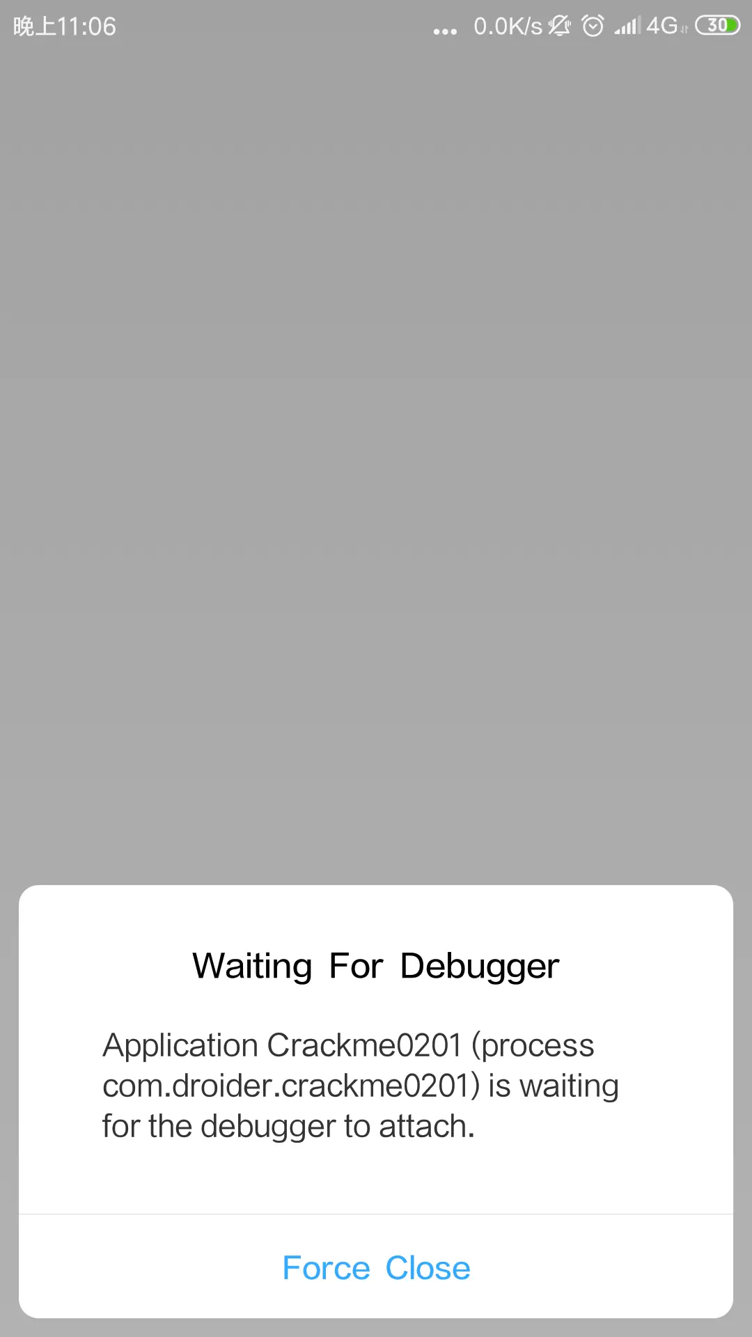 adb shell am start -D -n com.droider.crackme0201/.MainActivity