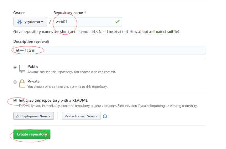 注意:做好项目后,需在本地初始化仓库,然后上传到github