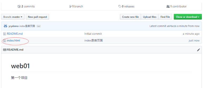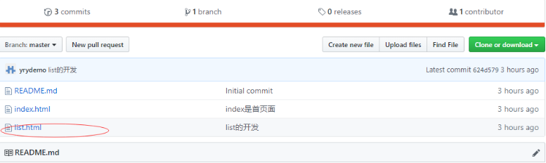 此时在已创建的项目里面,已经有保存文件。远程仓库已经创建完成。