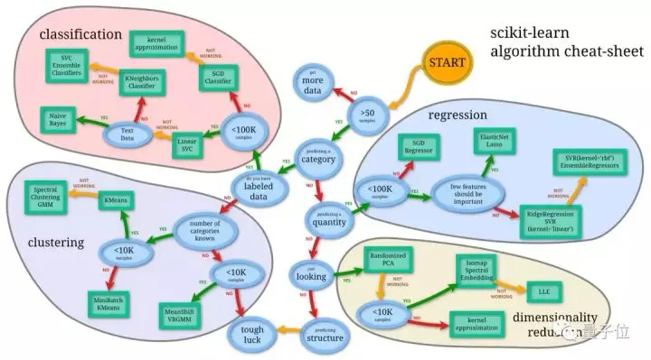 然后,一张美好的地图在眼前展开,这是用scikit-learn玩转各种任务的路线图。