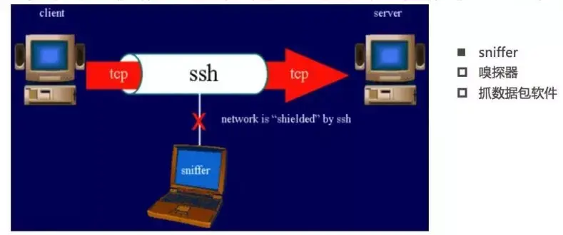 SSH: Secure Shell的缩写,表示“安全外壳协议”,是一种可以为远程登录提供安全保障的协议,使用SSH,可以把所有传输的数据进行加密,"中间人"攻击方式就不可能实现,能防止DNS 欺骗和IP欺骗