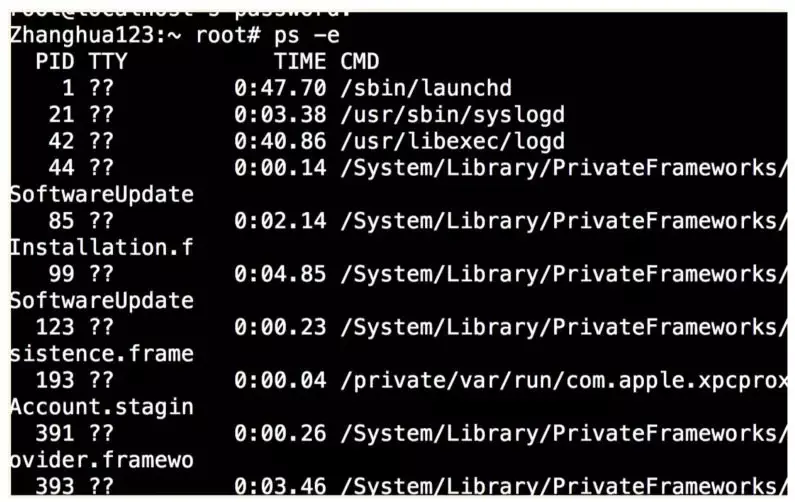 Zhanghua123:~ root# ps -e,会出现很多进程,看var开头的,可以看到开的进程,退出cy# 可以使用快捷键 control + D
