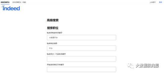 2. Indeed。可能大部分人只知道上面的招聘网站,但不知道还有一个Indeed,Indeed是世界上最大的招聘求职网站,其余的自行谷歌。高级搜索这边,可以自由定制玩耍。