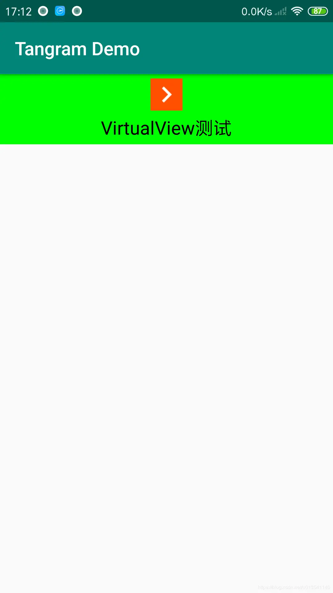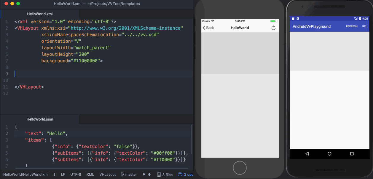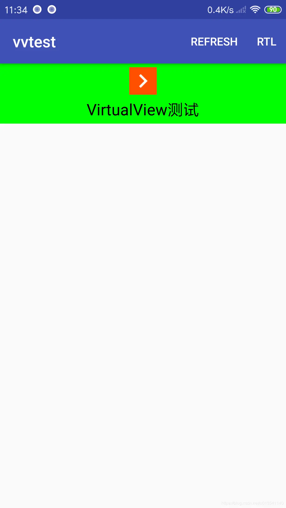 执行 run.sh ,运行VirtualView APP,打开“模板实时预览”-“vvtest”,即可看到效果,如图: