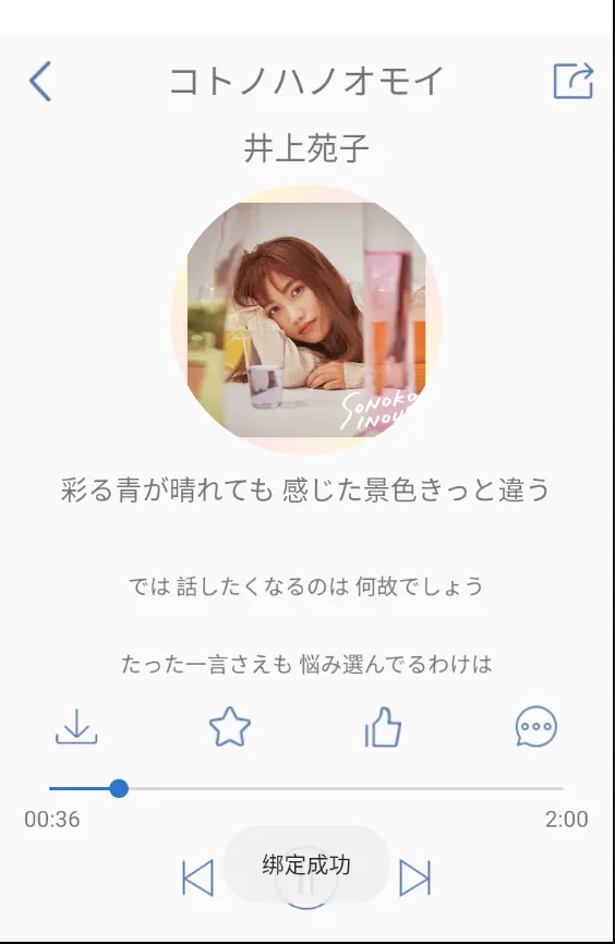 这个是继承自BaseActivity里的方法(上文中的BaseActivity并没有加入,但是因为这个是一个音乐App,所以需要和当前Activity进行绑定)在这里我们进行的是绑定操作完毕后的操作:执行changeNowMusic()来进行音乐界面的初始化操作override fun createPresenter