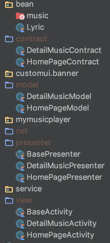 本文只针对MVP的结构进行了分析,一些其他的内容,如音乐播放器,自定义歌词View等并没有涉及,如果感兴趣的话可以访问GitHub源码地址