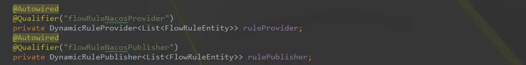 然后修改com.alibaba.csp.sentinel.dashboard.controller.v2.FlowControllerV2文件,将其中的ruleProvider和rulePublisher改成刚刚新增的那两个 -