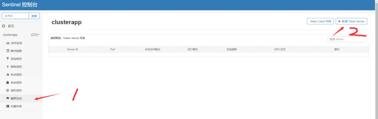 但这时候还没有server和client的概念,需要简单配置:点击集群限流菜单项,然后点击右上角的"新增Toeken Server"