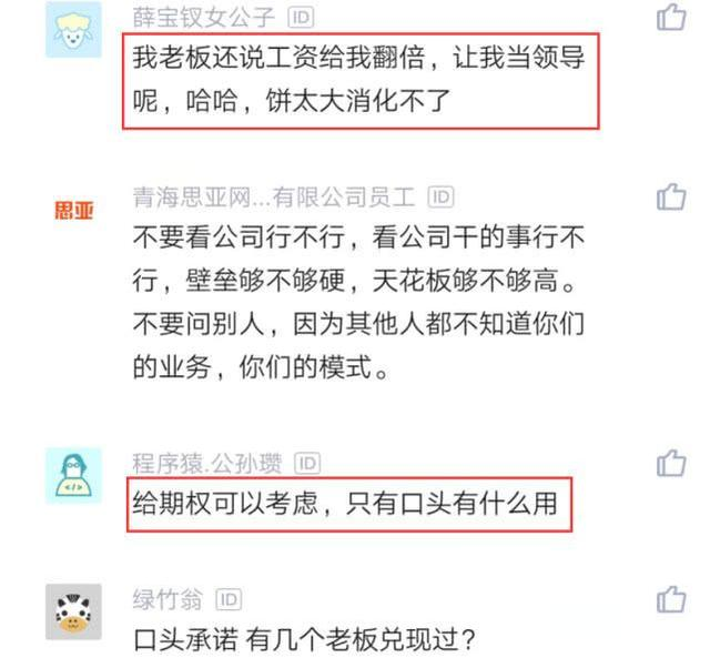 还有网友说可以和老板签个协议,你可以入职,但是如果明年达不到这个薪水,那老板自己掏钱给你补齐,不然还是别去,重新找工作就行了。但是一般敢做出这承诺的公司,大多数都熬不到那个时候。