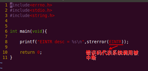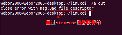 都可以通过strerror来将错误码转换成错误文本,上面程序已经看到了,下面再来试验一下另外一个错误码: