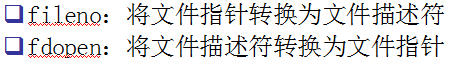 对于系统调用中的文件描述符与ANSI C标准库中的文件指针可以通过以下函数进行转换: