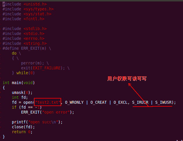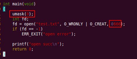 其实对于umask可以在程序中手动更改,我们可以将它设置为0,这样我们指定什么权限,最终文件创建就是什么权限了,如下: