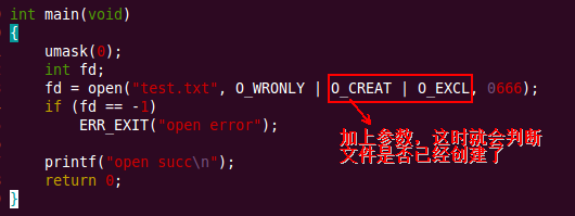 这时,如果想要不重复创建文件,则加上O_EXCL打开方式,再看下运行结果: