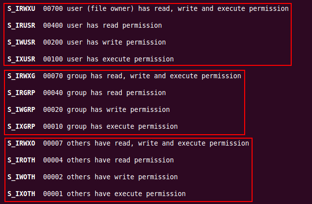 另外,对于文件访问权限的指定除了直接输入数字之外,还能利用宏的方式创建,有如下权限组合: