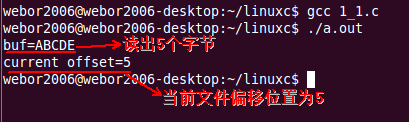 int ret = read(fd, buf, 5);//从文件中读取5个字节,这时文件指针就会偏移到5的位置