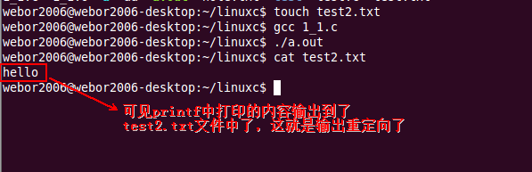 下面,以一段程序来说明一下输出重定向的原理,先复习一下什么是输出重定向: