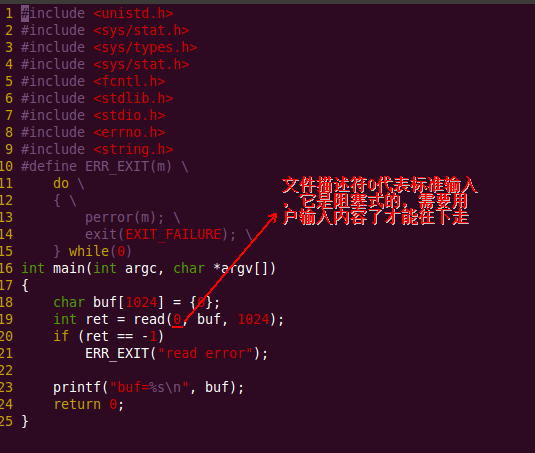 ret = fcntl(0, F_SETFL, flags | O_NONBLOCK);//通过F_SETFL来改变文件的状态为非阻塞0_NONBLOCK,但是为了保留其它状态,所以设置之前需获得状态,再进行与操作