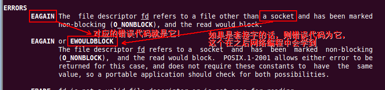 实际上,上面出错的错误代码也是EAGAIN,查看一下fcntl函数: