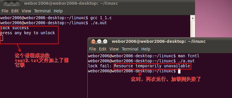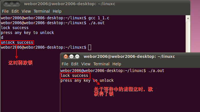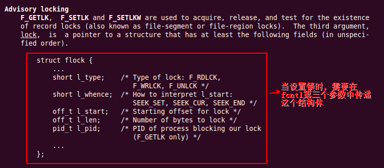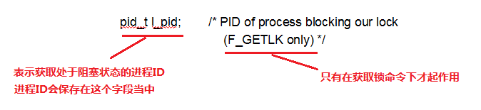 另外,如果想获得阻塞进程的ID,可以用F_GETLK,它会将id保存在flock结构体中的l_pid当中.