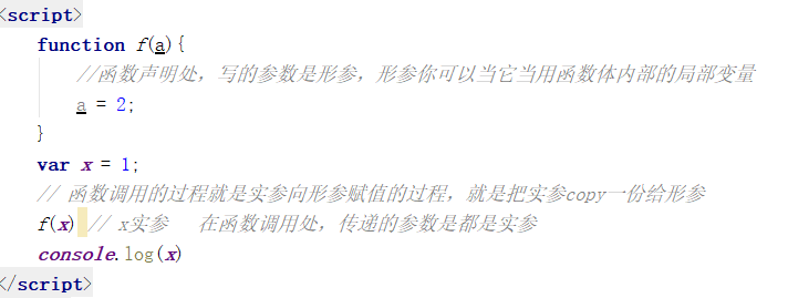 f(a):是函数声明处,a是形式参数,简称形参。形参你可以当它当用函数体内部的局部变量。