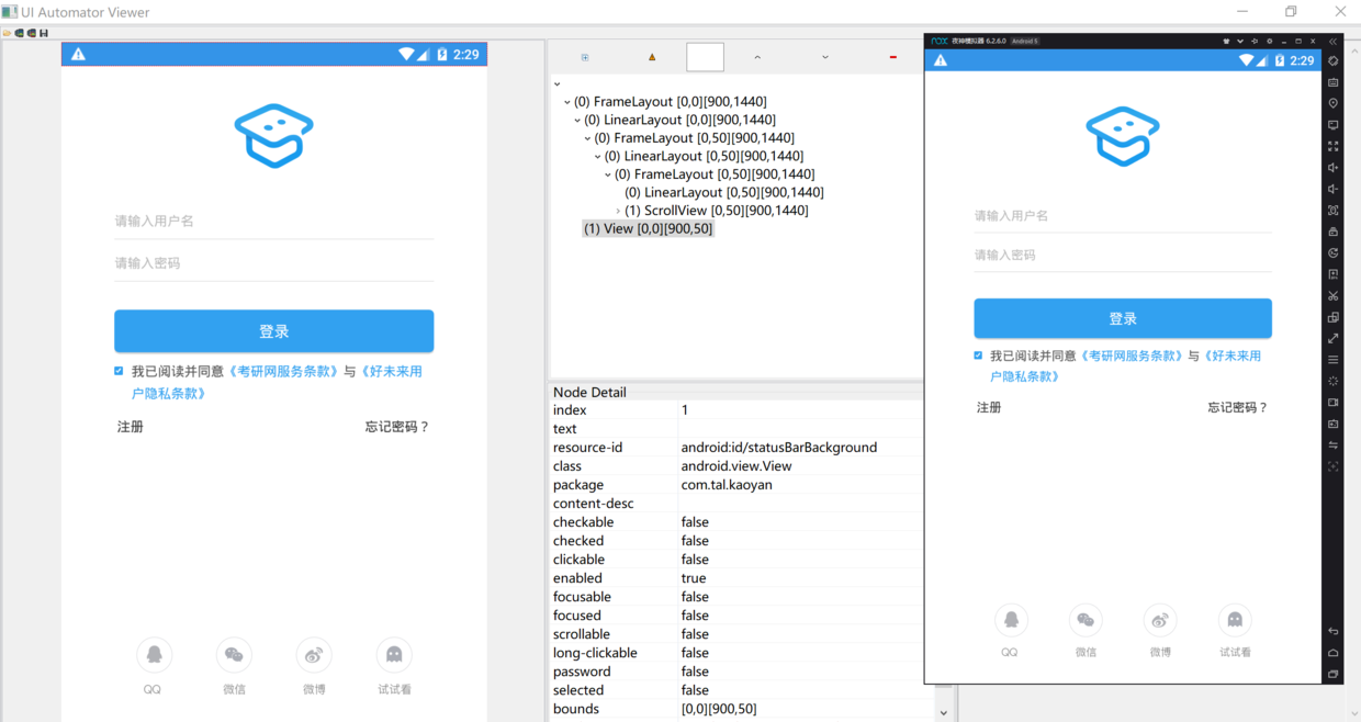 1.uiautomatorviewer – 一个图形界面工具来扫描和分析应用的UI控件。