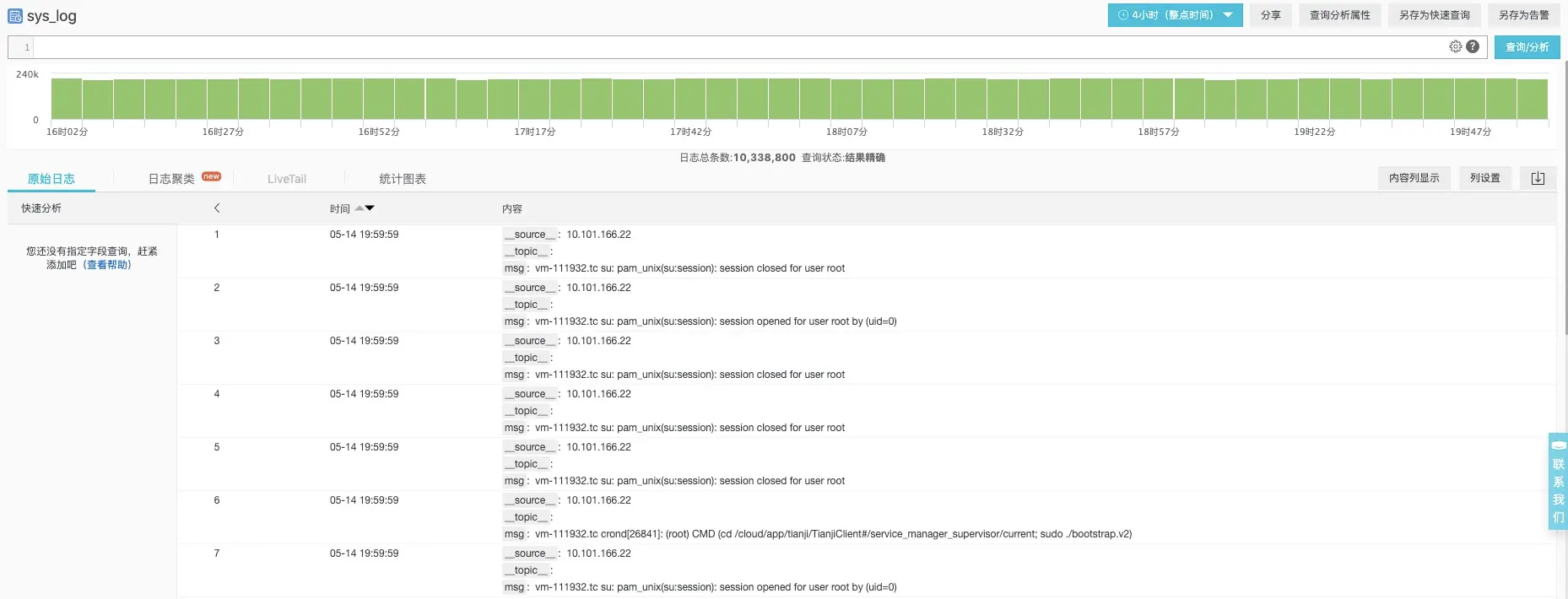 一份Sys Log的原始数据,,并且开启了日志聚类服务,具体的状态截图如下: