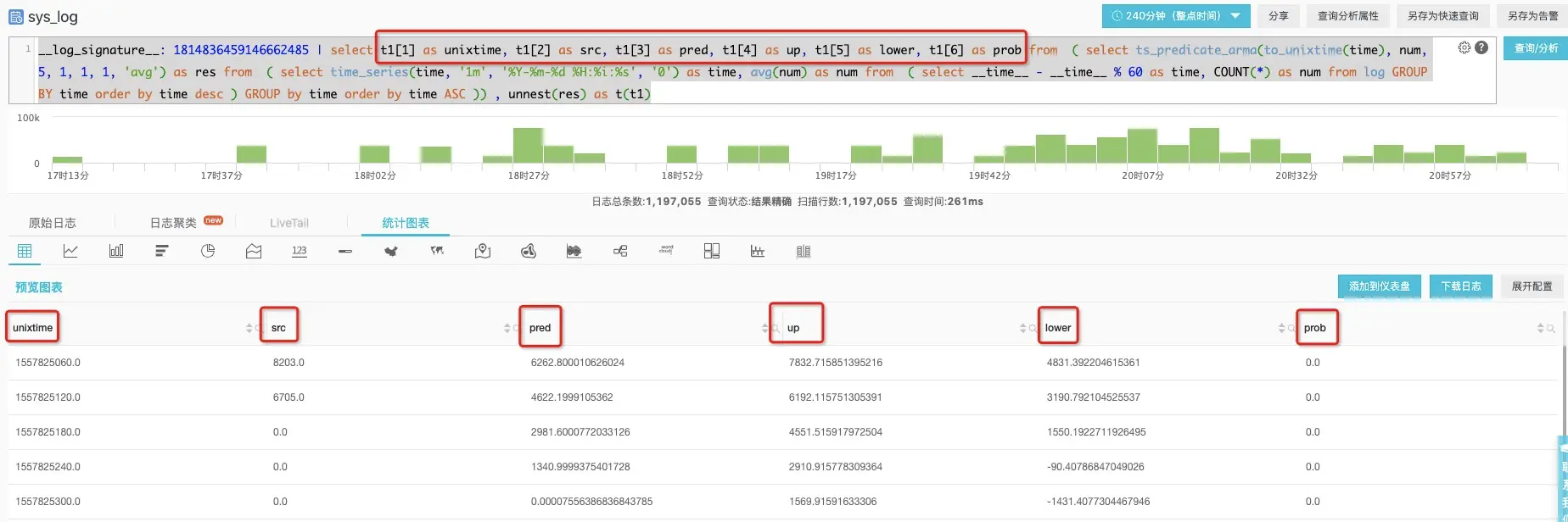 使用时序异常检测函数: ts_predicate_arma