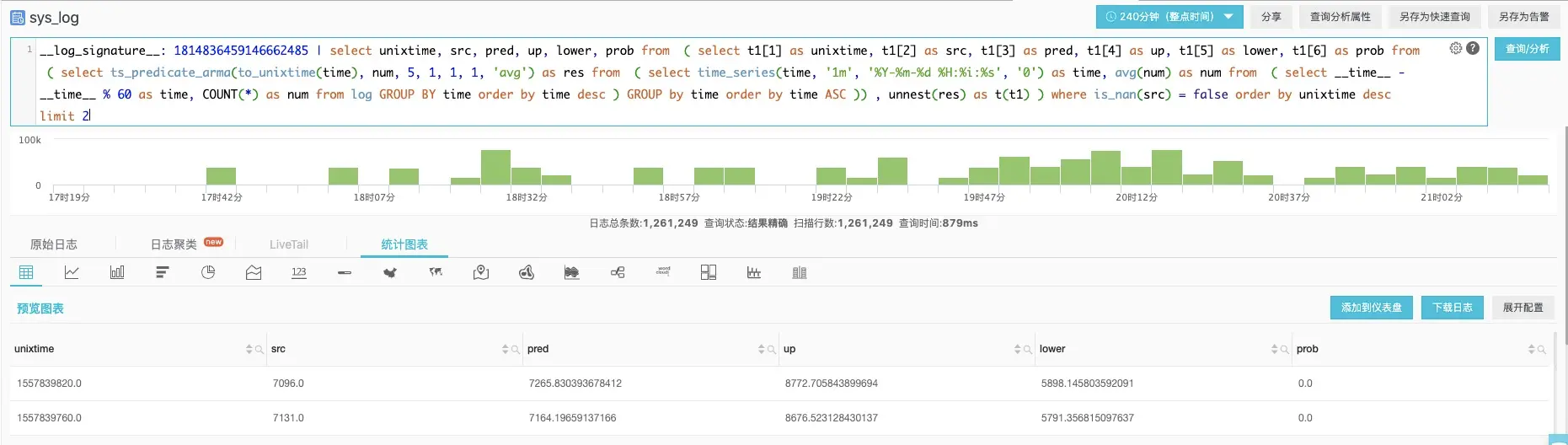 unixtime, src, pred, up, lower, prob